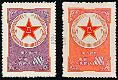 2、新中國(guó)發(fā)行過(guò)一批軍用郵票,由于發(fā)行量不同,“藍(lán)軍郵”價(jià)值百萬(wàn)元,“紫軍郵”市價(jià)兩三萬(wàn)元,“黃軍郵”僅千余元,造假者以“黃軍郵”為底,經(jīng)過(guò)截薄、黏貼、印刷變成“紫軍郵”,眼光稍遜者很容易魚(yú)目混珠。