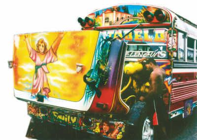 在中美洲的街道上,最驚艷的不是美女,而是當(dāng)?shù)匚孱伭陌褪,一輛輛飛馳著的大巴士,簡(jiǎn)直就是活動(dòng)著的藝術(shù)品。