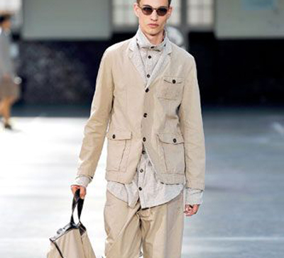 沙色總是在棕色與白色之間調(diào)和,棕色成熟,白色稚嫩,而沙色成為最中庸的選擇。搭配方面,沙色總是伴隨著土黃色而行,休閑的土黃色西裝搭配沙色休閑褲,麂皮鞋舒適具備親和力。另外,搭配皮質(zhì)與麻質(zhì)的提包時(shí)要夸張?zhí)岚捏w積感。