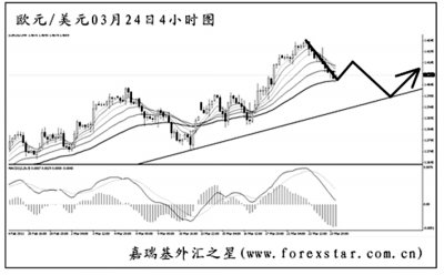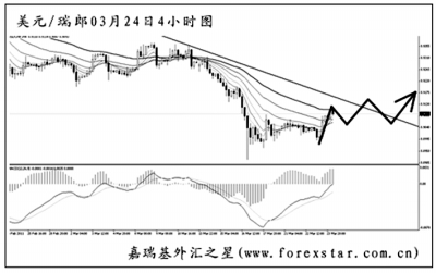 ▲美元兌瑞郎的震蕩盤整已經(jīng)持續(xù)了一周多的時(shí)間,由于下方已無任何支撐可以托住匯價(jià)的下跌,做空空間十分廣闊。從圖中分析,美元兌瑞郎目前接近了均線系統(tǒng)和趨勢(shì)線的雙重壓制位,若不迅速展開新一輪下跌,則最終升破此阻力區(qū)域的概率較大。做空需謹(jǐn)慎。