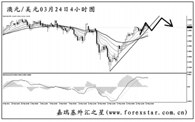 ▲澳元兌美元最近一波上漲的斜率十分陡峭,匯價(jià)重新向1.0255的前方高點(diǎn)阻力發(fā)起沖擊。從圖中看,澳元已經(jīng)接近了上升趨勢(shì)線的支撐位,且此趨勢(shì)線的角度很大,同時(shí)考慮到短線發(fā)出的MACD頂背離信號(hào),預(yù)計(jì)匯價(jià)將小幅跌破此線。后市澳元有望再走出一小波沖高,但沖破1.0255的概率不大。