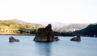 從島潭三峰入口的反方向過去,山坡上有一個小小的離鄉(xiāng)亭,是為了安慰那些因建忠州大壩而使得故鄉(xiāng)被淹的人們所建。上到亭子,可將島潭三峰盡收眼底。從離鄉(xiāng)亭的另一方向,沿路而上大約300米左右,有一塊巨石,中間被穿透形成一個大孔,形似大門,又恍若彩虹,名為“石門”,擁有著獨特的造型之美,不得不讓人感嘆天工之妙。