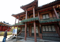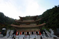 除了最有名的丹陽八景,丹陽另有一處值得一去,那就是巍峨壯觀的救仁寺。位于丹陽小白山的救仁寺是韓國佛教天臺宗宗本山的寺廟,建于1945年。與其他通常較為樸素的韓國寺廟相比,救仁寺有著截然不同的感覺。上山途中,沿路威嚴的建筑就令人產(chǎn)生一種仿佛身在中國的錯覺——高大、華麗。而山頂上最大的寶殿——三層之高的大祖師殿,更是金碧輝煌,雄偉壯觀。這樣華美的寺廟在韓國可以說是獨一無二,徒步半小時上山的辛苦也都一掃而空。