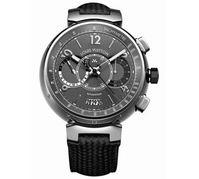 這款新型Louis Vuitton Voyagez Tambour 計時腕表表殼以不銹鋼打造,直徑44毫米,采用雙面防眩藍寶石表鏡,防水100米。 搭載瑞士自動機芯LV172 品牌自制機芯(以Dubois-Depraz機芯為基礎(chǔ)開發(fā)),配以棉質(zhì)針織表帶。