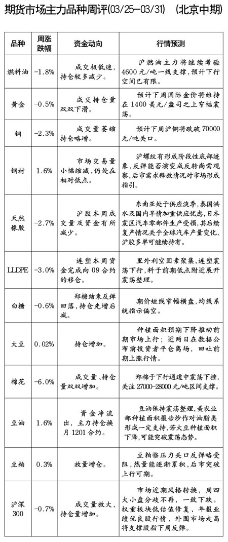 期貨市場主力品種周評[03.25-03.01]