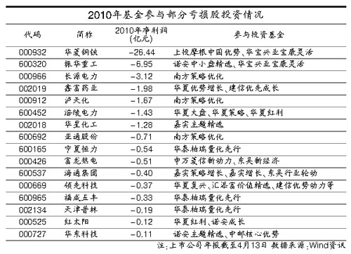其他業(yè)績出現(xiàn)虧損的鑫富藥業(yè)、瀘天化、涪陵電力、紅太陽、領(lǐng)先科技、海通集團等10多家上市公司,虧損額均在2億元以內(nèi),這些上市公司也不同程度地受到了基金的關(guān)照。