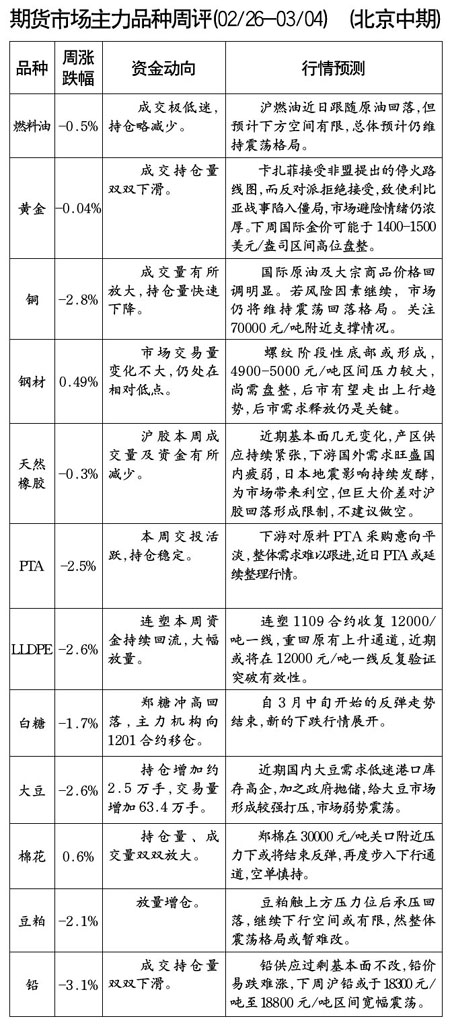 期貨市場主力品種周評[]02.26-03.04]