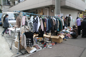 人們在目黑川附近賞櫻期間舉行義賣活動援助地震災(zāi)區(qū)。記者