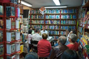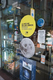 原以為這次的讀書日是一個(gè)西班牙的活動(dòng),因?yàn)槿堑膹V告都是la noche de los libros de madrid,后來才發(fā)現(xiàn),這是一個(gè)世界性的讀書活動(dòng)。前兩天我去經(jīng)常光顧的一家地圖店里獲取了這些信息,老板Esperanza非常熱情的邀請我參加他們書店的讀書日活動(dòng)。這次活動(dòng)是書店請來一位作家,圍繞他的著作舉行讀書講座,并簽名售書。