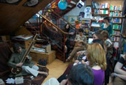 不大的書店里擠滿了聽眾,還有人在不斷的加入,照片中間那個(gè)穿白襯衫的就是作者M(jìn)ariano。整個(gè)講座中,他的話語雖然不多,但是字字珠璣。