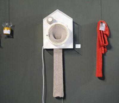 看到這樣的無(wú)厘頭創(chuàng)意,您是不是也覺(jué)得世界特別的美好呢?這是一個(gè)會(huì)織毛衣的鐘表,或者你也可以叫它能看時(shí)間的織布機(jī),總之這個(gè)看起來(lái)很蠢的家伙能告訴你時(shí)間,而且您在春天把它掛在墻上的話,秋天的時(shí)候就可以有一條兩米左右的新圍巾了。我想設(shè)計(jì)師并不是簡(jiǎn)單的弄出了這個(gè)無(wú)厘頭的東西,他是想告訴我們,時(shí)間的流逝的力量是多么的強(qiáng)大,反正我是被震到了。