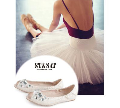 讓足尖的優(yōu)雅散發(fā)出來,讓趾間的靈感的游走于曼妙的舞姿,升成裊裊云煙,迷繞于你的時尚味蕾。芭蕾是一席流動的油畫,穿飄逸的紗裙,在舞動間,隱約的蕾絲也成為一道風景,將芭蕾舞鞋的柔軟安放在夏日時尚之中,以魚嘴設計創(chuàng)新呈現(xiàn),讓氣質之余也小露性感;微微褶皺的邊緣舒適承載著在夏日香氣里輕盈的舞步,胡桃夾子摘取了灰姑娘水晶鞋上的明亮,在芭蕾舞鞋上鑲嵌成別樣的水鉆,閃耀折射芭蕾公主的光芒,氣質迷人。
