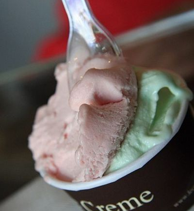 店主是熱情的意大利女人,冰激凌是就她手工制作的,全套制作工具和流程透過(guò)門(mén)店的玻璃隔板就可以看到。冰柜里約有20種口味的冰淇淋,色彩紛呈,甚是好看。最受歡迎還屬芒果口味,真正芒果制作,細(xì)心品嘗能吃到果肉纖維,新鮮的果肉香味,勾人口水。