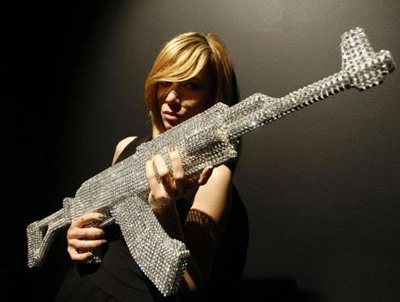 意大利雕塑家波拉(Nicola Bolla)日前在米蘭設(shè)計(jì)周展出,利用施華洛世奇(SWAROVSKI)水晶,做出AK-47步槍。