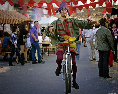 “頂大象”游戲——也是游行中頗具童心的環(huán)節(jié):當(dāng)有卡通形象的大象從頭頂經(jīng)過(guò)時(shí),人們都會(huì)踮起腳尖傳遞它。當(dāng),圣伊西德羅節(jié)到來(lái)時(shí),身上涂滿各色的油彩的人們聚集在本就不寬敞的西班牙街道上,似乎要回到十六和十七世紀(jì)城市的繁華中去,那是馬德里最好的年華。