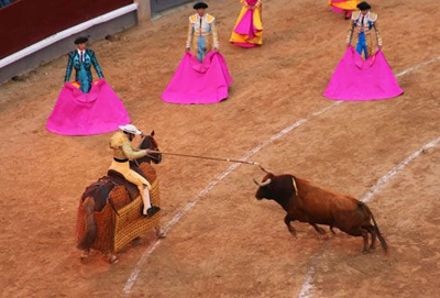 每年的3月19日到10月12日,是馬德里的斗牛季節(jié),每逢節(jié)日和周日都有斗;蚨沸∨5谋硌。5月的圣伊西德羅斗牛節(jié)是水平最高、場(chǎng)面也最熱鬧的。馬德里斗牛場(chǎng)位于城市東部,是一座古羅馬劇場(chǎng)式的圓形建筑,外墻為鮮艷的紅色,仿佛在呼應(yīng)斗牛士的紅披風(fēng)。