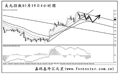 從圖上看,美元指數(shù)此前良好的反彈勢頭遭遇了一定的挑戰(zhàn),圖中上升趨勢線被跌破后,短線持續(xù)的MACD頂背離信號發(fā)揮了作用。目前匯價運(yùn)行在一個下行通道之中,即將考驗(yàn)均線系統(tǒng)的依托力度。美元若想結(jié)束中線的跌勢,需要站穩(wěn)在道氏高點(diǎn)75.75上方。預(yù)計(jì)后市美元回落后還將有一波沖高走勢。