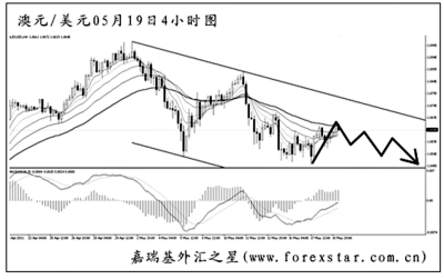 ▲澳元兌美元的大C浪下調(diào)基本結(jié)束,匯價小幅反彈,目前運行在一個下降通道之中。雖然澳元短線的下跌幅度較大,但從日線圖上看,均線系統(tǒng)仍然呈現(xiàn)向上的排列,現(xiàn)在就斷定澳元筑頂成功為時尚早。短線可以謹(jǐn)慎看空澳元,即使后市上沖,突破通道上沿的希望也并不是太大。