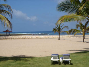 島上房地產(chǎn)業(yè)隨著旅游業(yè)發(fā)展迅速升溫。從游客密集的庫塔海灘駕車向北行駛40分鐘,是相對偏僻、寧靜的另一片海灘。即使在這里,每平方米地價也漲到500美元以上,是兩年前的兩倍。