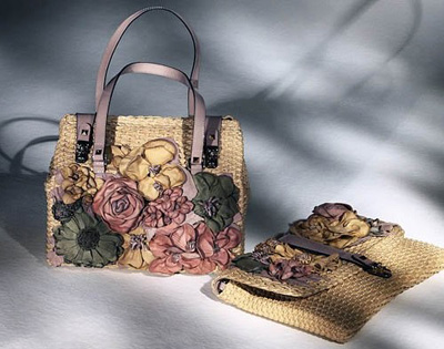 手工立體花朵裝飾的Valentino手袋是高超手工藝與相異材質(zhì)混搭碰撞的藝術品。皮質(zhì)手工花朵,經(jīng)過復雜程序和工藝的加工制作,花蕊與花瓣都生動逼真、惟妙惟肖;草編手拿包搭配立體皮質(zhì)花朵與漆皮搭扣,輕松把玩各種材質(zhì)的精微變化,游離于硬朗與溫柔之間。