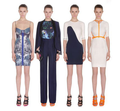 Pina Ferlisi為Alexander McQueen的副線McQ 2012 resort秀帶來了一個似曾相識的“未來主義”度假系列。不過,它的主元素——潛水服,可能正在成為下一年的時髦新品。 潛水服款式似乎在2012 resort系列中成為了一個重要元素,Alexander Wang、Michael Kors、McQ都使用了這種緊身+拉鏈元素。而McQ的這個系列中拉鏈無處不在:迷你裙、連體服、夾克、腰封、皮包、牛仔布、橡膠衫……都鑲嵌著它。