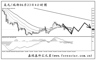 美元兌瑞郎的強(qiáng)勢(shì)有所收斂,短線在持續(xù)進(jìn)行盤整。從大級(jí)別圖形上看,下降趨勢(shì)線和均線系統(tǒng)的壓制作用仍非常完好,反彈阻力重重。且即使突破了圖中的趨勢(shì)線,道氏高點(diǎn)的阻力0.8940也將發(fā)揮強(qiáng)勁的作用。考慮到瑞郎的持續(xù)強(qiáng)勢(shì),目前做多美元兌瑞郎仍需謹(jǐn)慎。