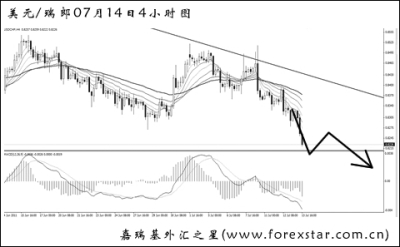 美元兌瑞郎在經(jīng)歷了一個多月的盤整走勢之后再度強悍創(chuàng)出新低,日線圖下降趨勢線的壓制作用完好,短中線方向再度趨于一致,目前瑞郎仍為非美中表現(xiàn)最為強勢的幣種。由于下方?jīng)]有任何點位可以阻擋住匯價的下行,現(xiàn)在操作以堅定的做空美瑞為主,見到平緩的調(diào)整節(jié)奏、量好止損幅度后方可入場。