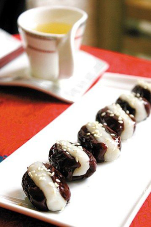 老板娘對于食材特別挑剔,如果碰不上好食材寧愿不做。像“心太軟”,就是在紅棗里面夾著糯米,紅棗必須要用蘋果棗,才能個(gè)頭大而且香甜。這道招牌甜品,“唇紅齒白”就是它的最好寫照,口感飽滿而不膩,一口一個(gè),就像在吃一粒QQ彈牙的紅棗。