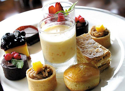 傳統(tǒng)英式松餅、法式拿破侖、藍(lán)莓芝士和杯形蛋糕等甜點(diǎn)