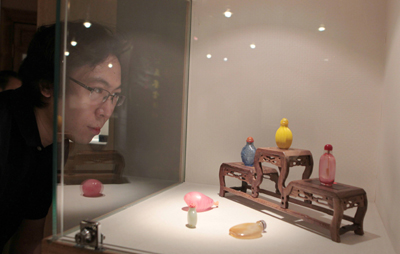 7月16日,“2011中國百年鼻煙壺展”在北京拉開帷幕。幾百件鼻煙壺的收藏在展覽中躍然呈上,種類齊全。展覽以清代鼻煙壺精品和當代實力派內(nèi)畫大師黃三創(chuàng)作的內(nèi)畫鼻煙壺精品為主,滿足了眾多收藏愛好者對鼻煙壺歷史的了解以及對現(xiàn)場展示的內(nèi)畫作法的了解。讓更多喜愛本原文化的人對鼻煙壺的門類有了新的認識。