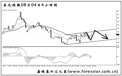 日本央行也在8月央行會議上一致維持0-0.10%的利率水平不變,并將量化寬松規(guī)模由10萬億日元提升至15萬億日元。日本央行表示,全體委員一致決定擴大量化寬松,經(jīng)濟面臨的不確定性仍然很高,對日本經(jīng)濟的下行風險需要更加謹慎,維持物價穩(wěn)定則需要更長的時間。日本央行同時表示,歐元區(qū)債務問題的緊張形勢仍然存在,對美國經(jīng)濟前景的謹慎情緒升溫,市場仍擔憂美國的債務問題。該利率決議公布后,美元兌日元強力突破4小時圖壓力線,短線上漲幅度一度超過了200點。