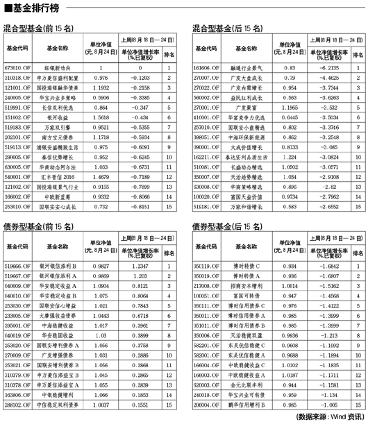 混合型基金排行榜[2011-08-26]