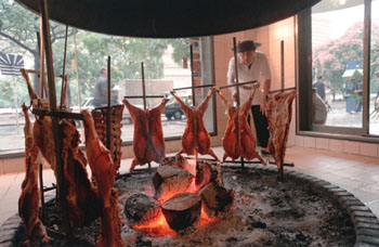 許多阿根廷人也喜歡自己在家做烤肉吃。德馬里奧夫婦常帶兩個(gè)兒子來吃“尼古的舞廳”,不過周末也會(huì)在家自己做。德馬里奧太太講,幾乎每個(gè)阿根廷父親都會(huì)烤肉,只是味道千差萬別;母親幾乎都會(huì)做醬汁,口味也千差萬別,各家獨(dú)特配方,常有創(chuàng)新。對(duì)阿根廷人來說,烤肉最大的樂趣在于一家人聚在一起,自己動(dòng)手,不過要吃正宗地道的烤肉,還得去烤肉店。