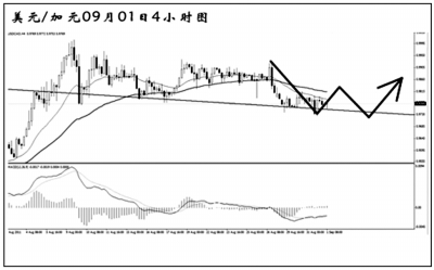 美元兌加元將周線圖的下降趨勢線成功升破,且短暫越過了道氏高點阻力0.9910,F(xiàn)在匯價持續(xù)在趨勢線上方進行盤整。從日線圖上看,美元兌加元上漲的主次節(jié)奏清晰,只要匯價不大幅跌破下降壓力線,后市匯價再度創(chuàng)出短線新高進而形成階段性底部,繼續(xù)向上反彈的概率較大。