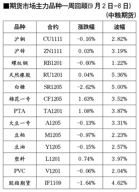 期貨市場(chǎng)主力品種一周回顧[9月2日-8日]
