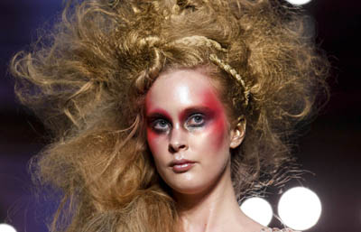 在英國倫敦2012年春夏時裝周上,模特展示英國設計師薇薇恩·韋斯特伍德(Vivienne Westwood)品牌的最新時裝。倫敦2012年春夏時裝周于9月16日至21日舉行。新華社發(fā)