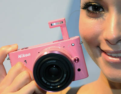 9月21日,日本尼康公司在香港舉行新聞發(fā)布會(huì),宣布推出全新的輕便型無反光鏡可換鏡頭相機(jī)Nikon 1系列以及專用的尼克爾鏡頭,首推“Nikon 1 J1”“Nikon 1 V1”兩款新產(chǎn)品,并于10月20日開始全球發(fā)售。圖為模特在展示Nikon 1 J1相機(jī)。