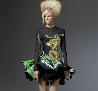 Versace(范思哲)是一個很神奇的品牌,在我們認(rèn)為它快要走下坡路的時候往往能有意想不到的好作品面世。而近年的高定更是佳品頻出,成為包括安吉麗娜·朱莉在內(nèi)等一線好萊塢女星的紅毯之選。這次的設(shè)計更是將立體剪裁的概念發(fā)揮到極致,通過材質(zhì)本身的硬挺度達(dá)到造型的目的。無論是作為新聞頭圖的品牌裙(仔細(xì)觀看可以發(fā)現(xiàn)裙擺上構(gòu)成了兩個天鵝圖案),還是針刺鏤空皮質(zhì)的拖地長裙都令人叫絕同時隱隱帶有McQueen的昔日風(fēng)采。另外值得注意的是這次整體所注重表達(dá)的中國風(fēng),還有年輕化傾向(有的甚至可以列入副線的行列)。