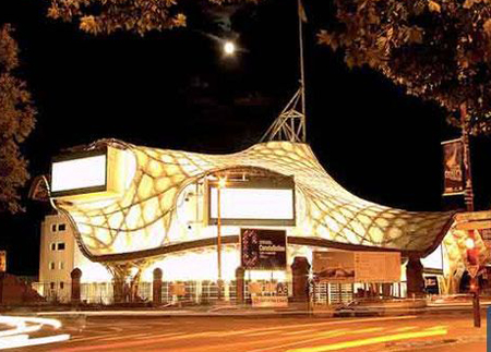 1977年,倫佐·皮亞諾、理查德·羅杰斯和弗朗科尼的設計幾乎讓沉寂的巴黎瞬間沸騰了起來。整個蓬皮杜就像被扒光了的一堆骨架,外露的鋼結構以及復雜的管線全部裸露在外,藍色的空調(diào)管、綠色的水管、黃色的電力管、紅色的自動扶梯……整個結構被人戲稱為“市中心的煉油廠”。在很長一段時間里,這座反巴黎傳統(tǒng)的地標性建筑受到了當?shù)厝说目谡D筆伐。最后,每天2.5萬的人流量才逐漸平息了蓬皮杜的爭議聲。