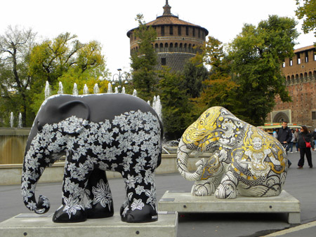 80尊彩繪藝術(shù)大象模型近期亮相米蘭街頭。這項(xiàng)名為“大象游行”的活動(dòng)由保護(hù)亞洲象的慈善組織發(fā)起,旨在吸引公眾對(duì)瀕危亞洲象的關(guān)注。11月22日,這些彩繪大象模型將全部拍賣,拍賣所得將用于亞洲象保護(hù)事業(yè)。新華社發(fā)