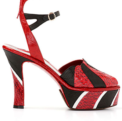 以高檔皮具聞名世界的西班牙品牌Loewe 2012春夏帶來粗細適中的高鞋跟,有了前端防水臺的設(shè)計讓舒適度陡增。 這一季,Loewe在鞋子的設(shè)計上除了蛇紋拼接的處理以外, 更以抽象的概念將整體花紋構(gòu)建出結(jié)構(gòu)清晰的視覺感官,讓每一雙鞋都堪稱藝術(shù)精品。