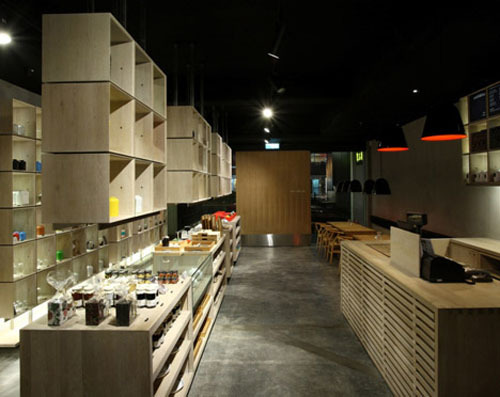 J?rgensen之手。茶館分兩層,一層擺放及產(chǎn)品展示架及木制家具,二層則是用餐室。木材與混凝土結(jié)合起來的室內(nèi)別具一番清新、自然的美感,與茶的細(xì)致、微妙相互融合,自然會(huì)勾起顧你與茶呼應(yīng)的無限情懷。