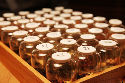 所有茶類在餐單上都有編號,你可以找出心儀茶品的編號,然后再從籃子里找出來聞聞。品茶這回事有時(shí)很難從文字上描繪出真正的感覺,直接體驗(yàn)實(shí)物會(huì)有更直觀的印象,這也是茶館貼心服務(wù)的體現(xiàn)。