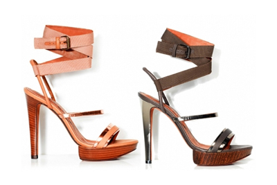 Lanvin 2012春夏鞋履系列堪稱性感中不失質(zhì)感的大氣之作。尖頭、超高跟、防水臺的鞋子,采用了木質(zhì)的防水臺,并在鞋跟上做了適當(dāng)?shù)狞c(diǎn)綴來滿足整雙鞋的造型需求。鞋面綴滿鉆飾的高跟鞋在鞋跟上也做了相應(yīng)的處理;裸色的涼鞋的鞋跟和防水臺統(tǒng)一采用了較深的色彩來壓住鞋子的重心。多種彩色蟒蛇紋的應(yīng)用都性感十足。