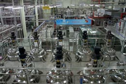 在工作人員的指引下,我們接著參觀了常人難以進(jìn)入的VVIP區(qū)——人參精加工區(qū)。這里又是另一番天地。透過玻璃窗,我們看到幾百臺圓形的大型機(jī)器,沿著管道有序排列,一刻不停地運(yùn)轉(zhuǎn)著。這就是韓國人參公社特殊的人參精制造工藝,將紅參的精華——汁液濃縮成人參精,制成各類產(chǎn)品,方便消費(fèi)者食用。整個(gè)人參精的加工過程需要15天,不可停歇。為保證絕對安全,加工區(qū)域?qū)嵭腥忾]。