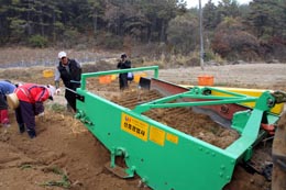 在利川,我們看到大片金黃色的人參田,農(nóng)民在田里勞作。如今收獲人參實(shí)現(xiàn)了機(jī)械化,幾輛大型的工作車輛沿著耕地渠道緩緩開過,將深埋地下的人參翻起至地表,這個(gè)過程需進(jìn)行兩次,一次深一次淺,以便在不傷害到嬌弱人參的前提下,將全部人參挖出。接著,農(nóng)民們再手工將挖出的人參裝入大籮筐,搬上運(yùn)輸車輛運(yùn)走。