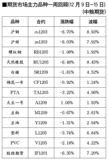 期貨市場主力品種一周回顧[12月9日-15日]
