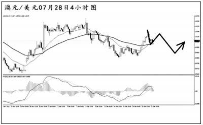 美元兌加元月中以來連續(xù)震蕩,走出一個4小時圖級別的旗形通道,但匯價最終未能選擇上行突破,短線連續(xù)下跌刺破了旗形下沿。MACD也進入到空頭動能充盈的階段。目前美元兌加元對通道下沿發(fā)起回抽,除非匯價能夠順利升破1.0310,否則后市繼續(xù)上行的阻力重重。