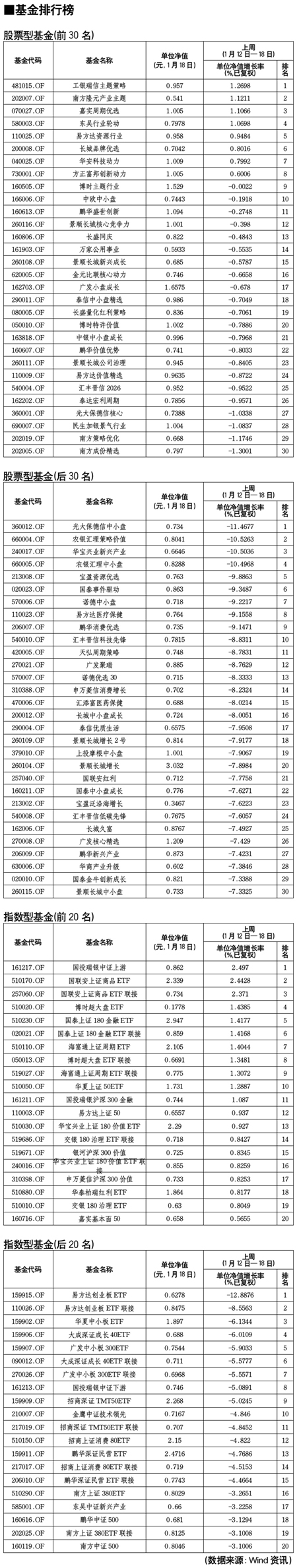股票型基金排行榜[2012-01-20]