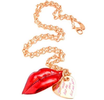 夸張的嘴唇吊飾以金屬色為基調(diào),并抹上鮮艷搶眼的火紅色,充滿著熱情的感覺;細膩像真的唇紋設(shè)計,更給人一口吻下去的沖動!